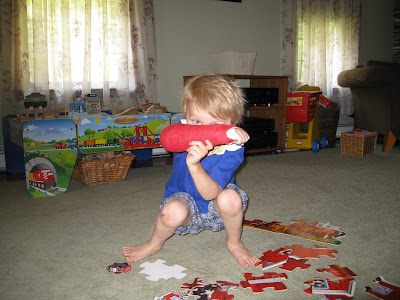 First thing he did when he got home yesterday? Tried to get onto his scooter and ride around. I was having none of that. I made him wait until today to ride.