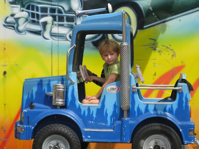 A trip to the Fair was well worth it. After all, D got to try out the big tractors: